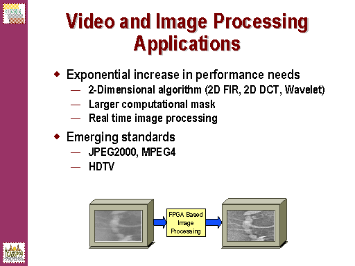 Video and image processing is another market that requires high performance solutions. The real time nature of video data streams requires real time performance that previously has not been available in a programmable solution.