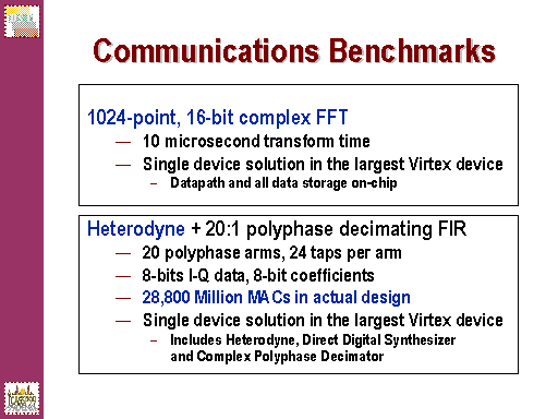 A single FPGA can implement a complete receiver heterodyne function requiring over 28,000 million (28 Billion) multiply accumulate operations per second. Note that this function will only use up one fourth the resources that are available on the board we just described.