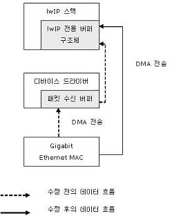 2. ¸Þ¸ð¸® º¹»çÀÇ Á¦°Å: lwIP´Â ¼ö½Å ÆÐŶÀ» ÀúÀåÇϰí ÀÖ´Â µð¹ÙÀ̽º µå¶óÀ̹ö ÃøÀÇ ¹öÆÛ¿¡¼ lwIP Àü¿ë ÆÐŶ ¹öÆÛ ±¸Á¶Ã¼·Î º¹»çÇϵµ·Ï ±¸ÇöµÇ¾î ÀÖ´Ù. º» ³í¹®¿¡¼´Â ÀÌ´õ³Ý ÀåÄ¡¿¡¼ lwIP Àü¿ë¹öÆÛ·Î Áß°£¿¡ º¹»ç ¾øÀÌ ¹Ù·Î DMAÇϵµ·Ï ¼öÁ¤ÇÏ¿´´Ù.