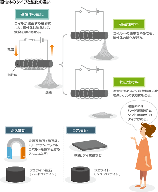 테이프 레코더 및 VTR의 자기기록에는 Hard 와 Soft 자성체의 성질을 잘 이용하고 있다.