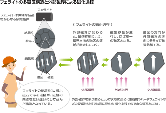 S자의 루프의 상승(일어섬)이 급준한 만큼 외부자계에 의해 민감하게 자화하고(고투자율),S자의 루프가 세로로 긴 만큼 보다 강한 전자석으로 작용한다(포화자속밀도).