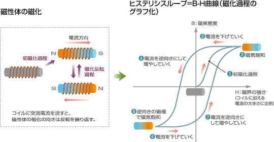 자성체의 자화의 프로세스를 그래프(Graph)화 한것을 히스테리시스 루프(Hysteresis Loop/히스테리시스 곡선,B-H곡선)라고 한다.