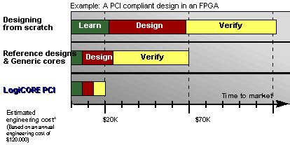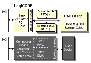 predictable LogiCORE PCI designs, easy-to-use tools and high-quality design services.