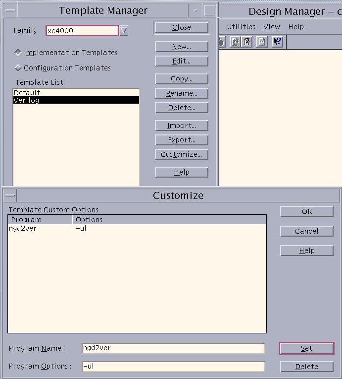 (WEBIMAGE 2:Design Manager Implementation Options Window)