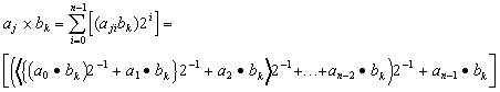 Equation 2 can be redistributed to be performed as a serial sequential summation of partial product terms, least-significant-bit (LSB) first, as follows