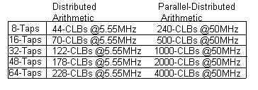 In summary, Table 1, is a list of the number of CLBs used to implement the 8-Tap, 8-Bit building block for various orders of FIR filters.