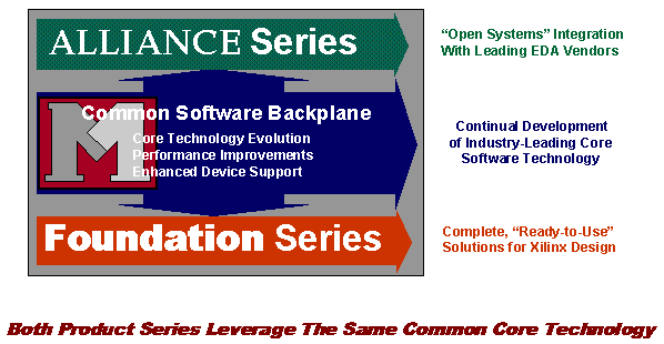 The M1 system is built upon a modular software concept. The M1 technology represents the core technology within this software System. It’s built upon a common software backplane that provides for core technology evolutions, such as the development of new algorithms or compilers. We deliver performance improvements through a combination of advanced device support and software enhancements. The core technology is developed on a continuum that allows us to focus on the continual development of industry leading software solutions. This core technology is leveraged by both of our software product lines. It is leveraged by the Alliance Series, which is focused on open systems integration with leading EDA Vendors. It also supports the Foundation Series which is our complete ready to use design solution. Both product series leverage this common core technology which benefits the user with design consistency and insures that Xilinx can deliver the most rapid software solutions to the market. |